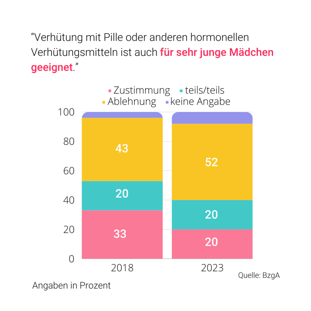 Fazit: Ein schwieriger Konflikt. Der Trend weg von der Pille ist inzwischen deutlich nachweisbar – und in Anbetracht der Nebenwirkungen gerade in der jungen Altersgruppe sehr gut nachvollziehbar.